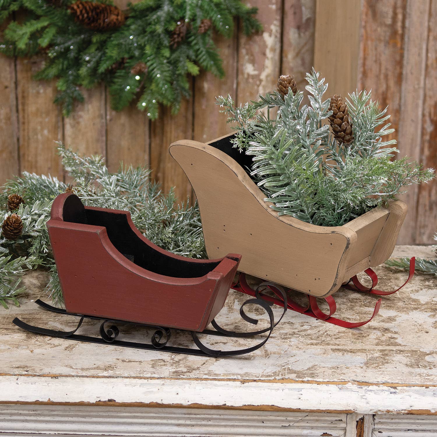 Distressed Red & Black Wooden Sleigh - Early December Drop