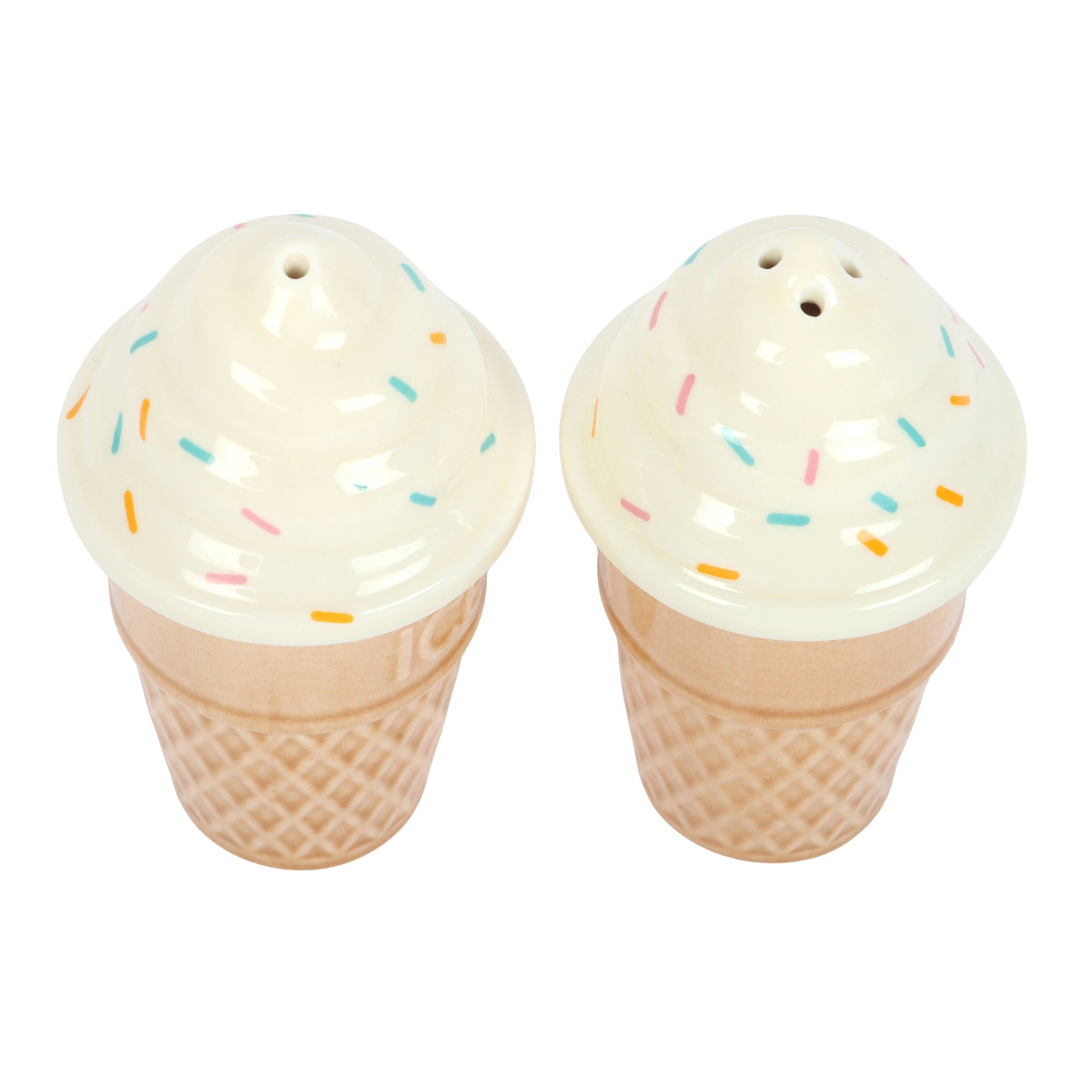 Set of 2 Ice Cream Ceramic Salt and Pepper Shakers. Comes in coloured box packaging.