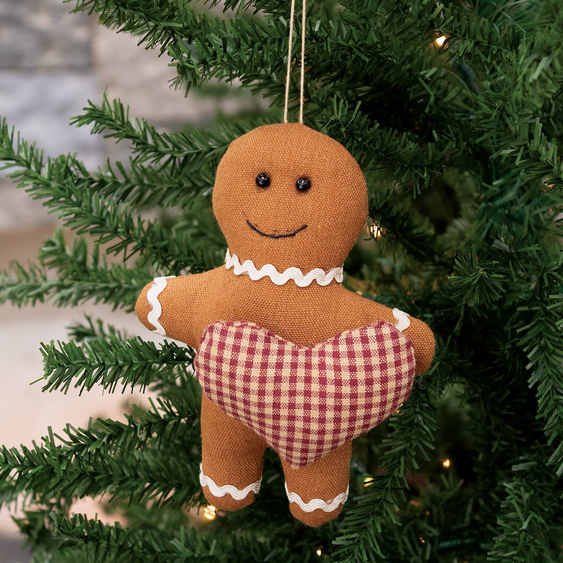 Stuffed Gingerbread w/Country Gingham Heart Ornament - Early December Drop